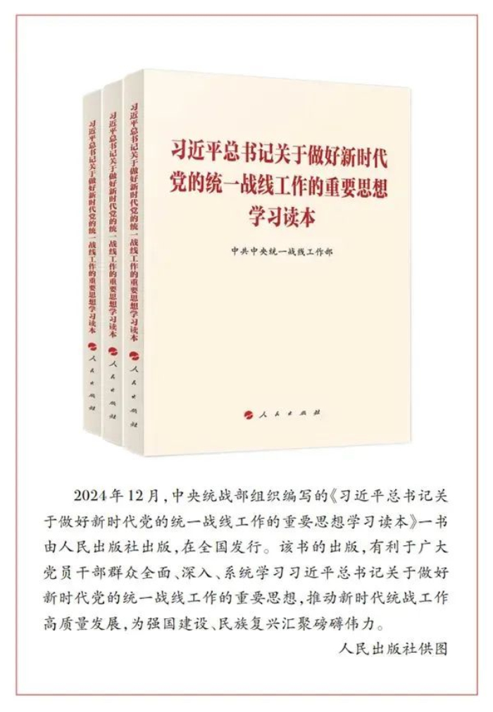 黨的十八大以來,以習(xí)近平同志為核心的黨中央高度重視統(tǒng)戰(zhàn)工作,習(xí)近平總書記就加強(qiáng)和改進(jìn)統(tǒng)戰(zhàn)工作提出了一系列新理念新思想新戰(zhàn)略,形成了習(xí)近平總書記關(guān)于做好新時(shí)代黨的統(tǒng)一戰(zhàn)線工作的重要思想。新征程上,堅(jiān)持把習(xí)近平總書記關(guān)于做好新時(shí)代黨的統(tǒng)一戰(zhàn)線工作的重要思想作為根本遵循,及時(shí)跟進(jìn)學(xué)習(xí)習(xí)近平總書記關(guān)于統(tǒng)戰(zhàn)工作的重要講話和重要指示批示精神,才能確保統(tǒng)戰(zhàn)工作沿著正確方向高質(zhì)量發(fā)展,推動(dòng)統(tǒng)一戰(zhàn)線在強(qiáng)國建設(shè)、民族復(fù)興偉業(yè)中更好發(fā)揮凝聚人心、匯聚力量的政治作用。
