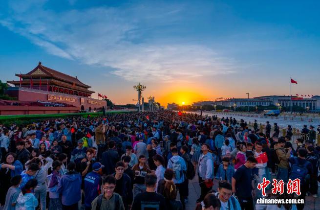 2025年10月1日,天安門(mén)廣場(chǎng)迎來(lái)國(guó)慶節(jié)第一縷陽(yáng)光。中新社記者 張煒 攝